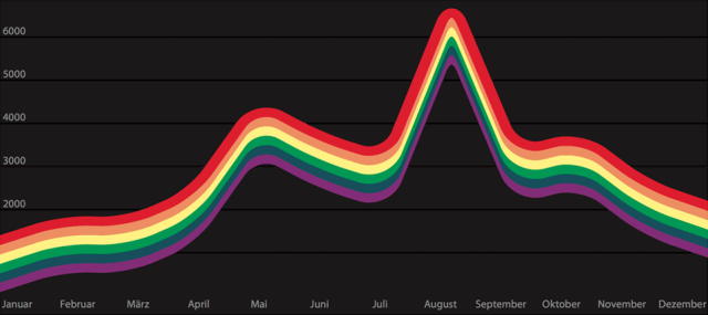 Welche ist die regenbogenreichste Jahreszeit? Wann am Abend haben welche Alkoholika ihren Peak? Wie blickdicht ist das Berghain? Welche Körperteile zeigen wir am liebsten? Welche kriegen die meisten Likes? Mit welchen Emojis schauen Schwangere auf ihren #babybauch? Auf solche Grundsatzfragen gibt es jetzt Antworten, auf fast zehn Seiten im neuen Heft: