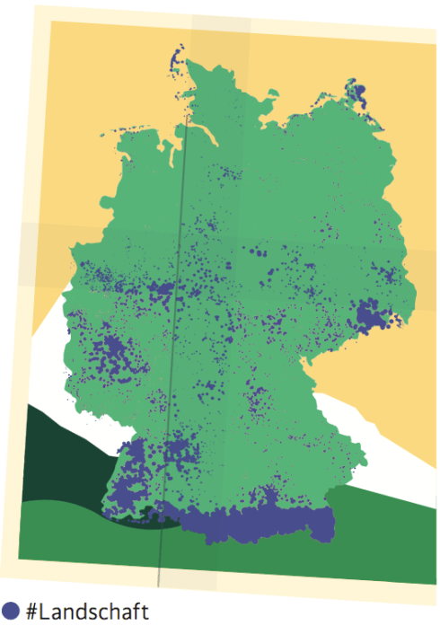 (Für die Datenanalysten unter euch: Wir – oder besser gesagt mein Kollege David Goldwich – hat mit Hilfe von QGIS geschaut, in welchen 50-Kilometer-Radien besonders viele #landschafts-Fotos im Vergleich zu #hunde-Fotos sind.)