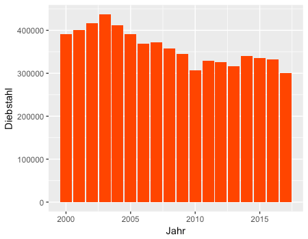 Steigen in einem Jahr die Verkäufe, steigen auch die Diebstähle – und umgekehrt. Noch deutlicher sieht man den Effekt im Streudiagramm: