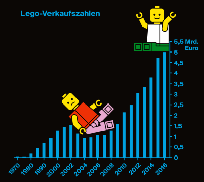 Als Lego zu Beginn der Nullerjahre in eine Krise stürzte, dachten viele, dass es das jetzt gewesen sei, dass Kinder künftig eben lieber an Bildschirmen spielen als mit Plastikbauklötzen. Dabei stand der Lego-Boom erst noch bevor. Dem Management gelang es, Lego ins 21. Jahrhundert zu überführen, durch Rückbesinnung auf die Wurzeln und Entwicklung neuer Ideen, wie David Robertson und Bill Breen in „Das Imperium der Steine“ beschreiben.